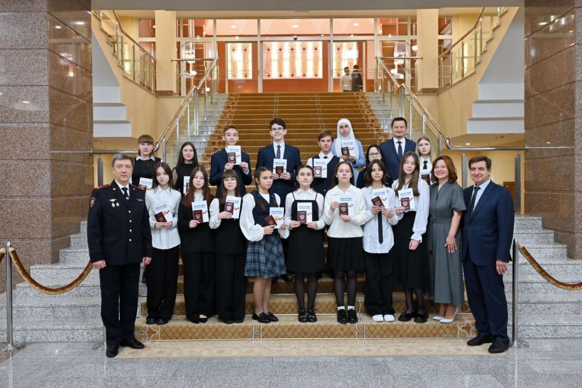 Мероприятие приурочено к двум государственным праздникам – Дню народного единства и Дню Конституции Татарстана, который отмечается в нашей республике 6 ноября. Главный документ гражданина России татарстанским школьникам вручил заместитель секретаря регионального отделения «Единой России», заместитель Председателя Государственного Совета Юрий Камалтынов. Как сообщает пресс-служба Госсовета, на торжественную церемонию были приглашены 17 учеников из разных районов республики. Среди них – победители олимпиад и творческих конкурсов, спортивных соревнований, отличники в учебе, активисты общественной жизни школы. По словам Юрия Камалтынова, эти юные граждане уже сейчас являются примером для своих сверстников. Сама же церемония вручения паспортов в парламенте в преддверии значимых государственных дат стала доброй традицией. «Вчера в нашей республике и стране отмечался День народного единства. В этот день особенно остро ощущается, что сила нашей необъятной страны – в дружбе и сплочённости населяющих её народов, - подчеркнул заместитель Председателя Государственного Совета. – Завтра мы отметим 33-ю годовщину со дня принятия Конституции Республики Татарстан. Именно в этих стенах проходила та историческая сессия, на которой приняли Основной закон нашей республики. Главный документ, по которому мы живем, в соответствии с которым развивается Татарстан». Как отметил Юрий Камалтынов, паспорт – это главный документ в жизни гражданина страны. Вместе с ним юные татарстанцы получают как права, так и обязанности. «Сегодня главная ваша обязанность – хорошо учиться, воспитывать в себе патриотов своей малой Родины, родного города или села, нашей республики, большой страны - Российская Федерация. Этот документ потребует от вас тех больших знаний и умений, которые вы получаете в школе, для того чтобы каждый из вас внес свою весомую лепту в развитие Татарстана и страны», - обратился к юным гражданам Юрий Камалтынов. В завершение церемонии от имени учащихся с ответным словом выступила ученица гимназии №141 г. Казани Лия Хайрутдинова. Она многократный победитель школьных этапов Всероссийской олимпиады по биологии, экологии, математике и литературе, лауреат Всероссийской научно-исследовательской конференции школьников «По следам Абдуллы Алиша», а также призер первенств по плаванию. «Для нас это особенный день. Мы получаем самый важный документ в жизни каждого – паспорт гражданина России. Особенно почетно получить его в стенах Государственного Совета. Этот день мы запомним на долгие годы. Обещаем не подвести и стать достойными продолжателями традиций нашего великого народа и нашей великой страны», - сказала Лия Хайрутдинова. В церемонии вручения паспортов приняли участие заместитель министра образования и науки Рамиль Хайруллин, начальник Управления по вопросам миграции МВД по РТ Марат Галеев, председатель регионального совета сторонников «Единой России», Уполномоченный по правам ребенка в Татарстане Светлана Захарова, депутаты Государственного Совета и родители. Вместе с паспортом юные граждане получили текст Конституции Российской Федерации и Татарстана, а также памятные подарки. Школьники побывали на экскурсии в парламентском центре, посетили зал заседаний Государственного Совета, зал приема официальных делегаций, му