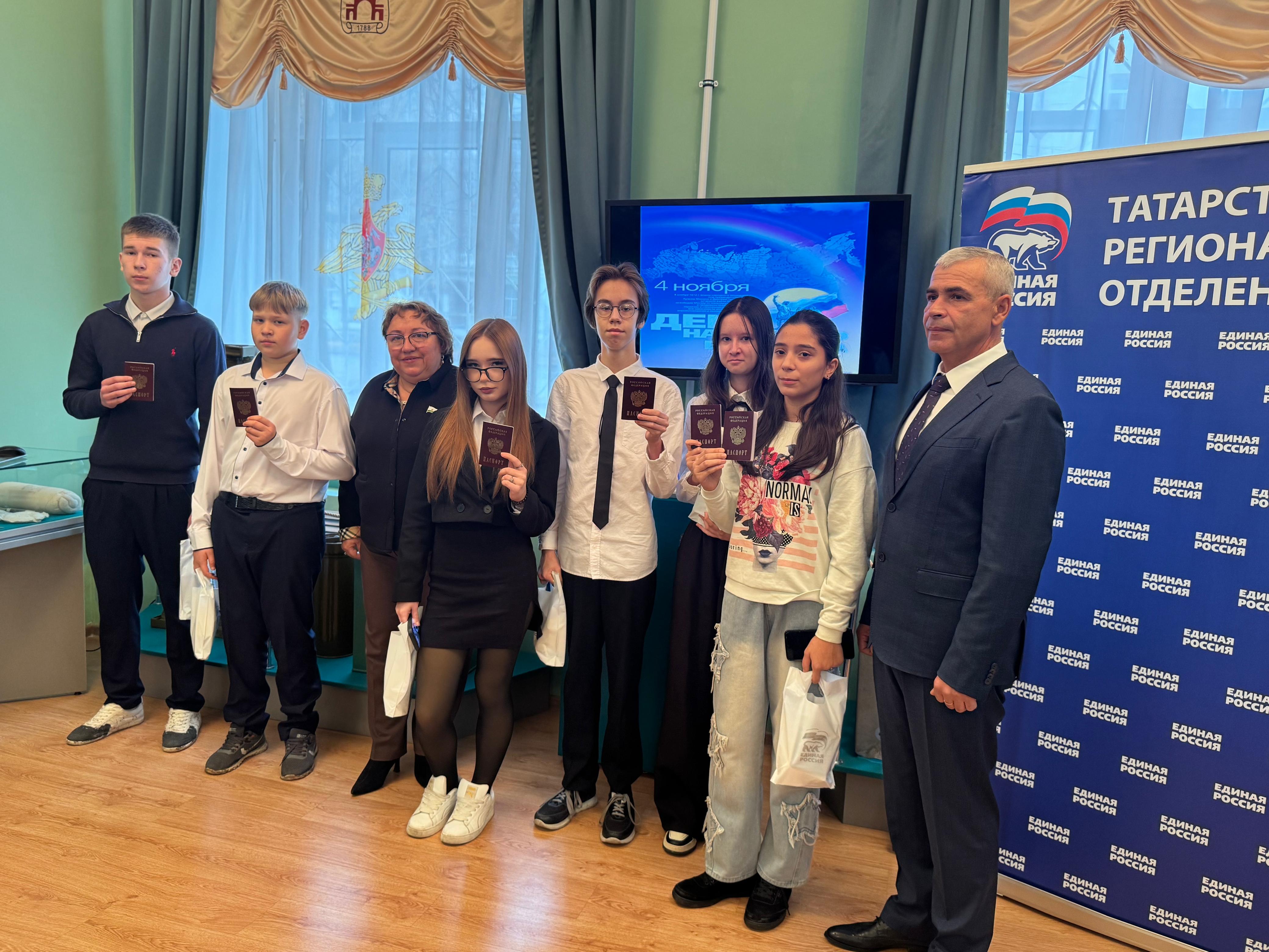 Торжественная церемония вручения паспортов подросткам — символического подтверждения их статуса гражданина Российской Федерации организована Казанским местным отделением партии «Единая Россия» и приурочено двум важным датам – Дню народного единства и Дню Конституции Республики Татарстан. В мероприятии приняли участие исполнительный секретарь Казанского местного отделения, депутат Казгордумы Танзиля Ракова и директор строительной компании «Бриз», депутат Казгордумы Андрей Беляков. Церемонию открыла руководитель общественной приемной Ольга Шпигель, которая рассказала о значении этих праздников. Она подчеркнула, что День народного единства — это символ единства и сплоченности русского народа, а также напоминание о важности сохранения исторического наследия и культуры. Особое внимание она уделила истории возникновения этого дня, подчеркнув, что он объединил народ в трудные времена борьбы за независимость и сохранение ценностей. Танзиля Ракова тепло поздравила молодых граждан с этим важным событием в их жизни — получением паспорта гражданина Российской Федерации. Она отметила, что получение паспорта — это не только формальный документ, но и символ взросления, ответственности и принадлежности к великой стране. «Очень символично получать паспорт именно в преддверии таких праздников, как День народного единства и Конституции Республики Татарстан, ведь они говорят о нашем общем будущем», — акцентировала Танзиля Ракова. Андрей Беляков отметил важность ответственности, которую берет на себя каждый новый гражданин, и важность сохранения национальных ценностей и культурного наследия. Он напомнил ребятам стихи Владимира Маяковского, подчеркнув их актуальность для молодого поколения и важность патриотического воспитания. Мероприятие завершилось торжественным вручением паспортов и совместным фотографированием. В целом, это стало отличной возможностью не только поздравить молодых граждан, но и напомнить им о многовековой истории, традициях и ценностях нашего многонационального государства. Такие инициативы способствуют укреплению патриотизма и гражданской ответственности, а также помогают молодежи почувствовать свою причастность к истории и будущему Родины, уверены организаторы праздника. Вернуться назад Новости рубрики