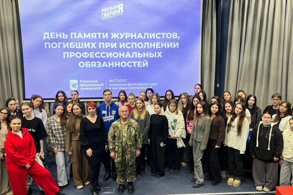 В мероприятии приняли участие более 50 студентов: будущих журналистов и телевизионщиков. В начале встречи в актовом зале участники почтили память погибших журналистов минутой молчания. С приветственным словом выступила первый заместитель главного редактора русской редакции информационного агентства «Татар-информ» Светлана Белова. Она рассказала студентам о своей рабочей поездке в Лисичанск и Попасную в 2023 году, а также представила репортаж, снятый непосредственно на месте событий. Светлана Белова отметила, что этот день имеет для неё и личное значение: Редактор отдела армии и ВПК газеты «Республика Татарстан» Владимир Дынник поделился опытом работы военным корреспондентом в зоне специальной военной операции. Он побывал в Донецкой, Луганской, Запорожской и Херсонской областях, работал на горячих участках и рассказал студентам о реальных историях, свидетелем которых стал лично. Особый интерес у аудитории вызвал рассказ о спасении маленькой девочки по имени Марта. Боец СВО из Казани Марат Ганиев обнаружил ребёнка в частном доме на линии огня, вынес её из-под обстрела, преодолев несколько километров с малышкой на спине. Девочку назвали в честь спасителя — Марта. По словам корреспондента, работа журналиста заключается не только в передаче информации, но и в помощи мирным жителям. В завершение Владимир Дынник подчеркнул: «Главная ценность журналистики — в живом человеческом взгляде на происходящее. Именно через личные эмоции и переживания корреспондента зритель и читатель получают наиболее честное и сильное представление о событиях». По его словам, работа в горячих точках требует не только профессионализма, но и внутренней стойкости, поэтому память о журналистах, рисковавших жизнью ради правды, заслуживает особого уважения. «Этот день напоминает нам о том, что журналистика — это не просто профессия, а служение. За каждой строкой, за каждым кадром стоят человеческие судьбы, мужество и ответственность. Журналисты, работающие в горячих точках, зачастую платят самую высокую цену за право общества знать правду. Для нас особенно важно, чтобы будущие журналисты не только осваивали профессию, но и понимали её глубинный смысл — быть честными, смелыми и неравнодушными. Сохранять память о погибших коллегах, уважать их подвиг и продолжать их дело — наша общая задача», – отметил член Регионального штаба ТРО ВОО «Молодая Гвардия Единой России» Риф Хуснутдинов. Вернуться назад Новости рубрики