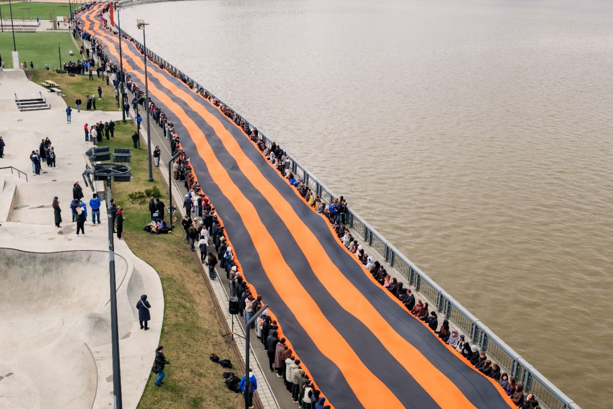 Более 800 человек приняли участие в развертывании самой большой Георгиевской ленты в России длиной 300 метров. Среди участников акции были молодогвардейцы, студенты вузов и ссузов города, школьники, активисты общественных организаций Татарстана и жители Казани.